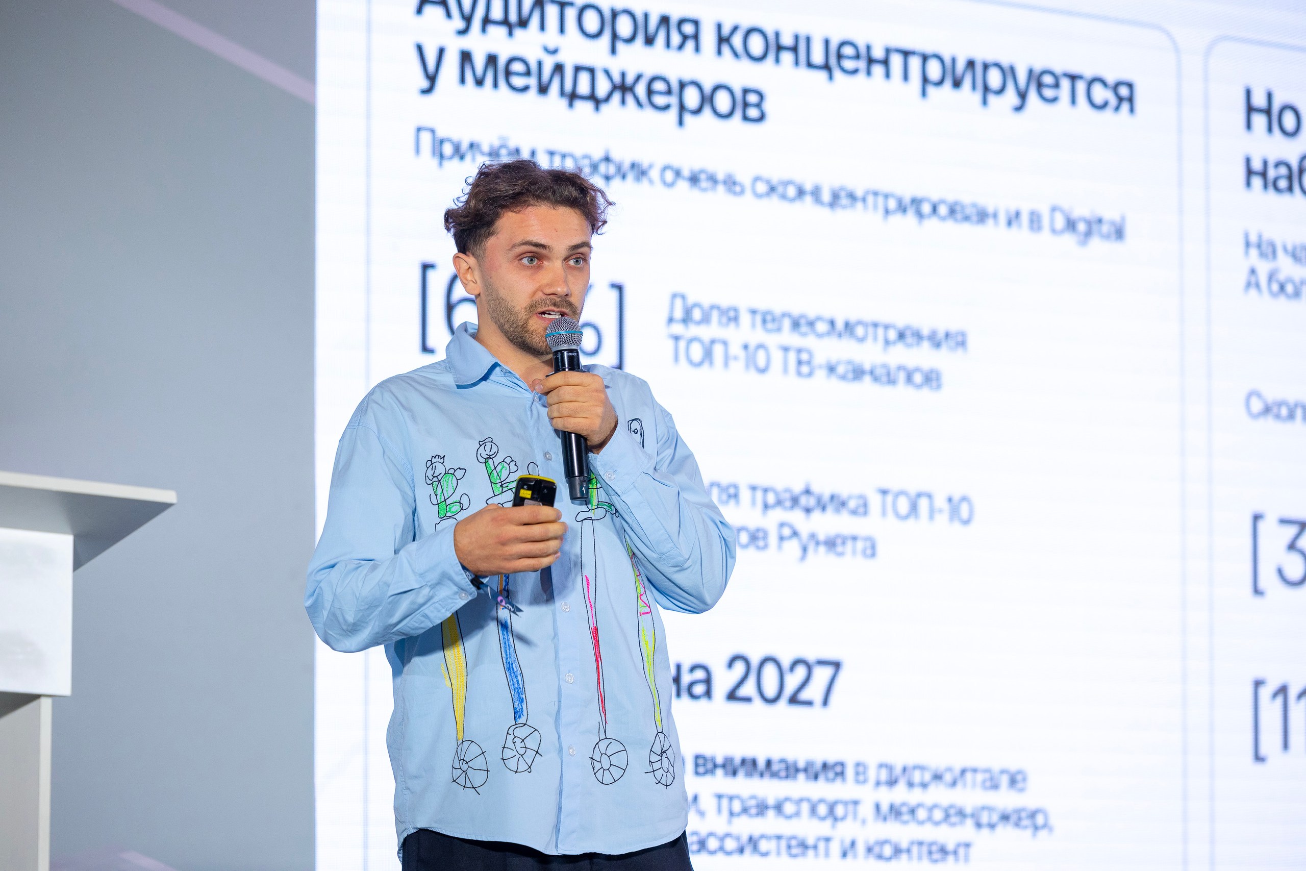 Следующим продолжил секцию Максим Солдатов, руководитель медиа KGM. В своем выступлении он рассказал историю выхода бренда на российский рынок в условиях смены позиционирования и переполненности рынка.