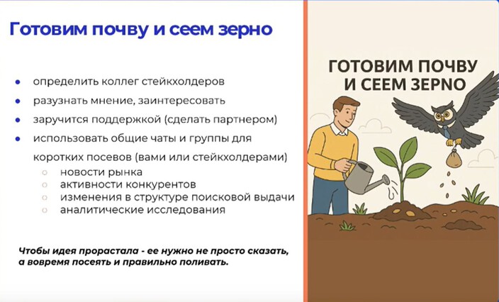 «Люди поддерживают то, что сами придумали», — сказал Ашуров. Стейкхолдеры, отрефлексировав идею с привлечением GEO, будут чувствовать себя сопричастными к ее разработке и к полученному результату, а значит, будут охотнее откликаться.