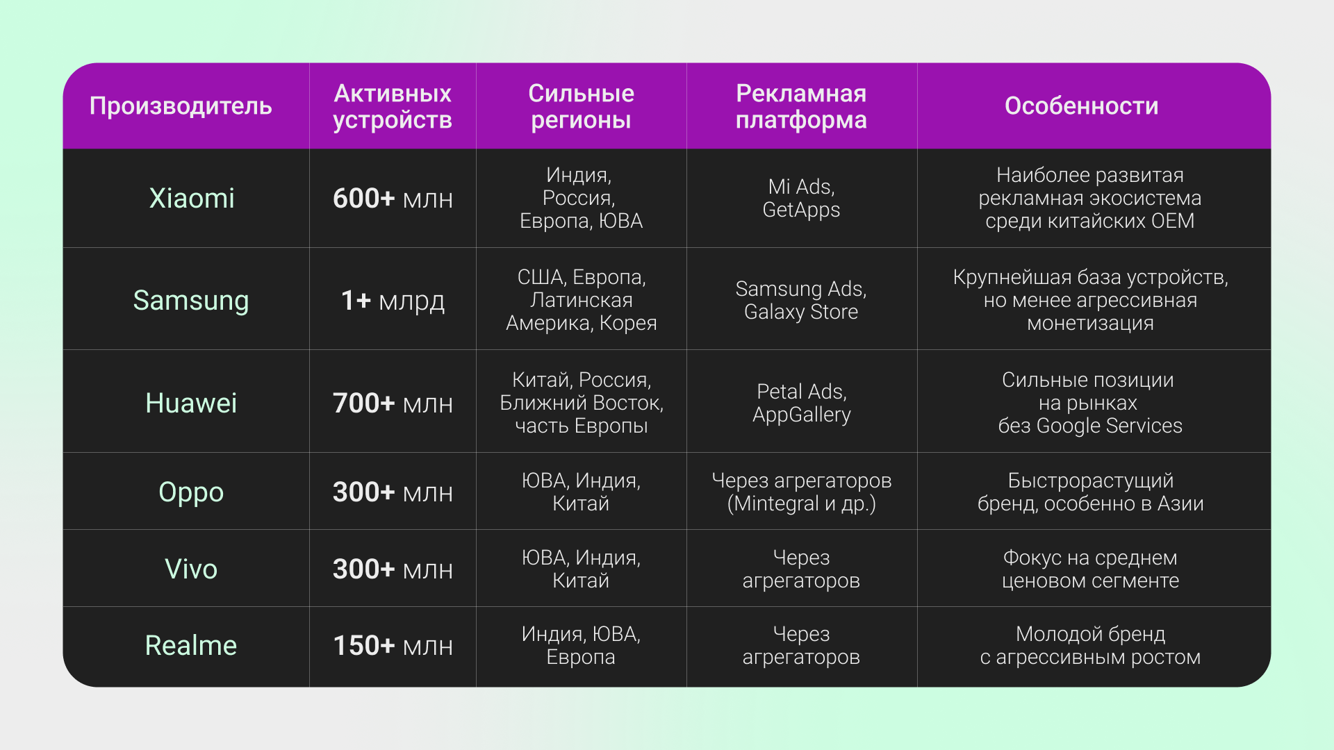 В этих условиях игнорирование OEM — это не способ «сэкономить» или «не переплатить», а осознанная потеря части Android-аудитории, до которой классические каналы просто не доходят.