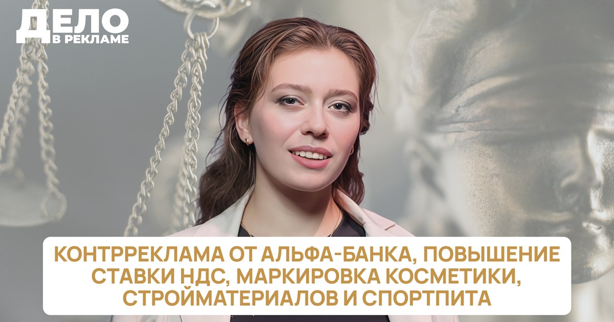 «Дело в рекламе»: контрреклама Альфа-Банка, повышение ставки НДС, маркировка косметики, стройматериалов и спортпита