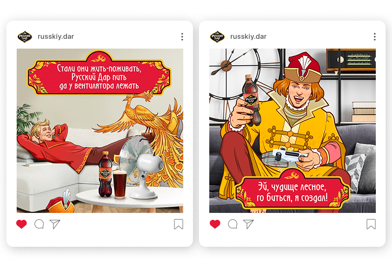 Cюжеты русских народных сказок легли в основу этикеток новой лимитированной коллекции «Русского дара» (PepsiCo) и постов в соцсетях. Пользователи могли увидеть Царевну на электросамокате или Царевича, который выбирает новые кроссовки, а также узнать на лендинге, как скажется их сказка. Рассказываем, как создавался микс из современных трендов и старых традиций, который привлек и молодую, и взрослую аудиторию