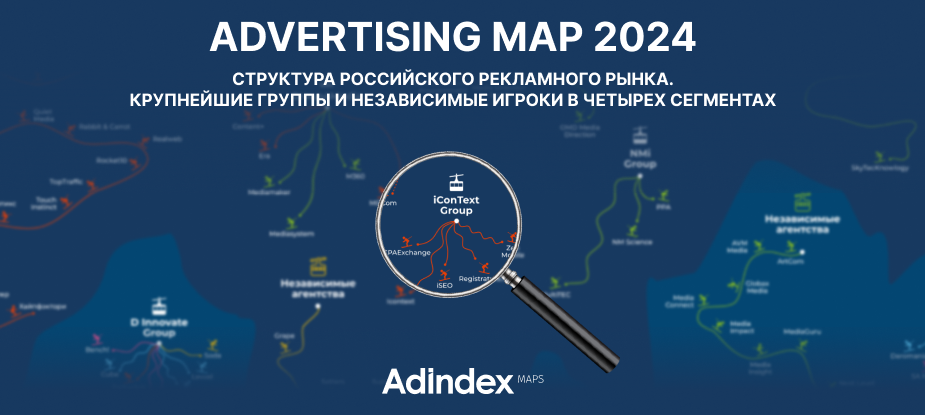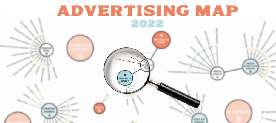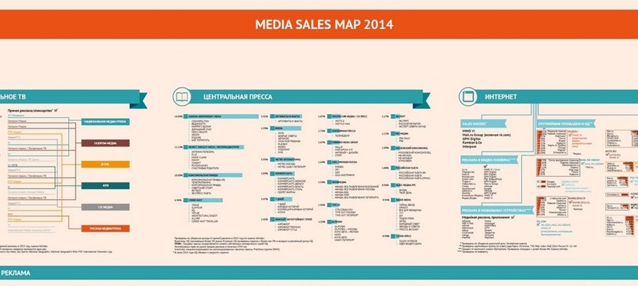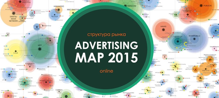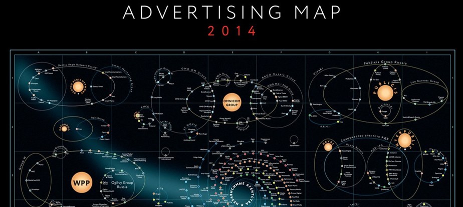 На карте представлена структура мировых рекламных холдингов и их представительства в России, а также российские локальные группы компаний и крупнейшие независимые агентства.